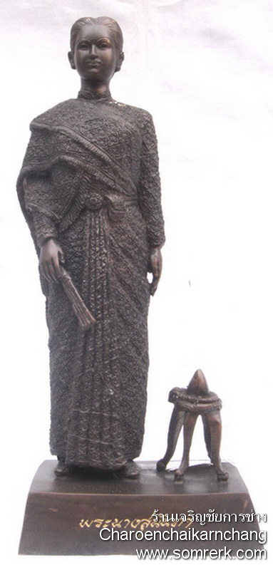 พระนางเรือล่ม คือรูปเหมือนที่ถ่ายทอดพระเกียรติและความสง่างามของ สมเด็จพระนางเจ้าสุนันทากุมารีรัตน์ พระบรมราชเทวี ในรูปแบบงานหล่อที่เหมาะสำหรับการประดิษฐาน การจัดแสดง และการสั่งทำตามวัตถุประสงค์เฉพาะ หน้าแสดงสินค้าระบุขนาดตัวอย่างทั้งแบบท่านั่งและท่ายืน โดยมีงานหล่อ ทองเหลือง ให้เลือก หลายขนาด รวมถึงตัวอย่างการทำสีหลากหลายแบบ เช่น สีมันปู พ่นสีทอง ปิดทอง ขัดเงา และงานผิวพิเศษต่าง ๆ เหมาะสำหรับผู้ที่ต้องการชิ้นงานที่มีทั้งคุณค่าทางศิลปกรรม ความสง่างาม และความเหมาะสมกับสถานที่ประดิษฐานหรือพื้นที่สำคัญในโอกาสต่าง ๆ
